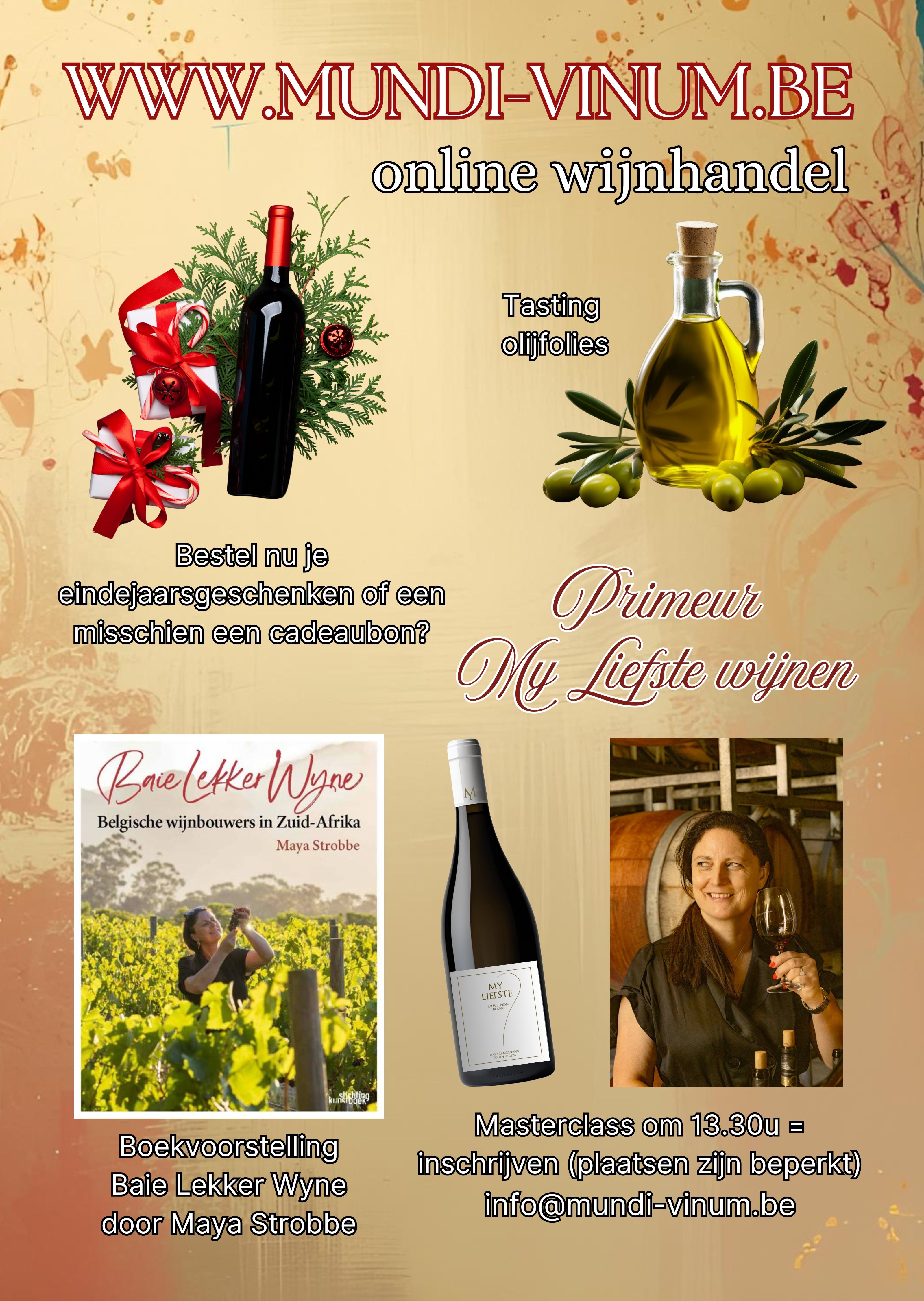 Het is met grote vreugde dat we aankondigen dat Maya Strobbe aanwezig zal zijn tijdens onze End of The Year Tasting op dindag 11 november bij Mundi Vinum. Dit is een unieke kans om persoonlijk kennis te maken met Maya, haar wijnen te proeven en het verhaal achter haar boek Baie Lekker Wyne te ontdekken. In het boek staan 18 wijnmakers uit Zuid-Afrika centraal met Belgische roots. Laat je inspireren door het vakmanschap, de passie en het uitzonderlijke verhaal van haar prachtig boek.